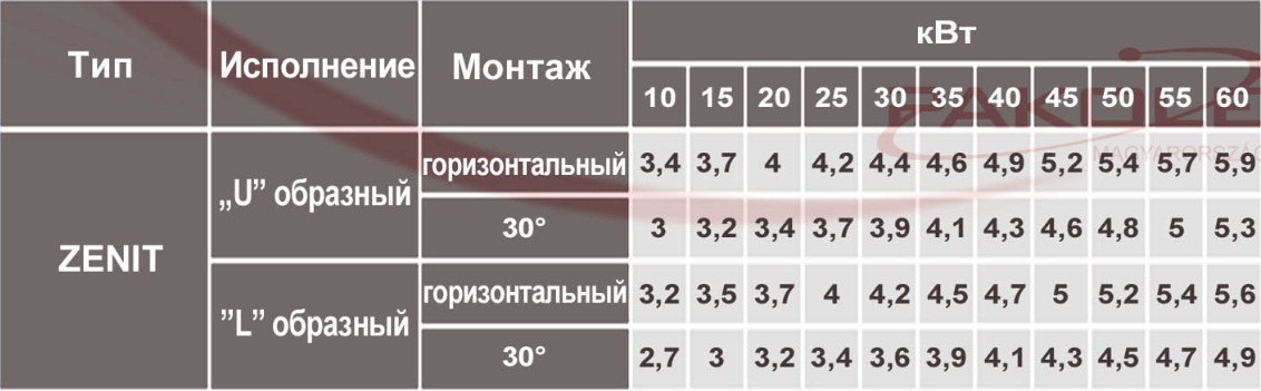 Технические характеристики инфракрасных обогревателей ZENIT "PAKOLE"